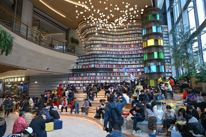 1月2日,重庆两江新区一商场内,休息区坐满了前来购物的市民。新华社记者 陈诚 摄