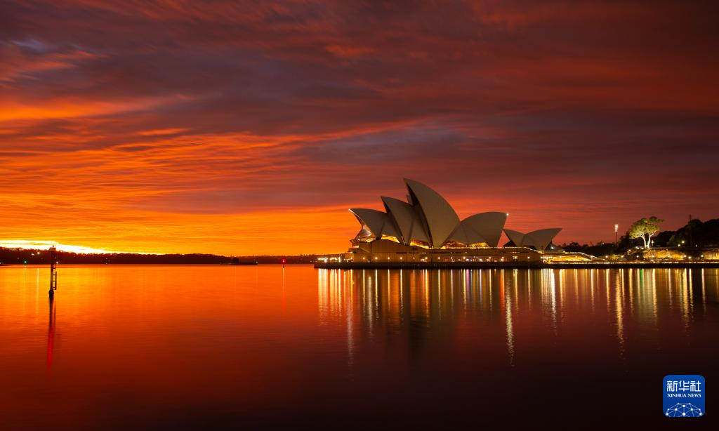 这是8月27日清晨拍摄的澳大利亚悉尼歌剧院日出景色。