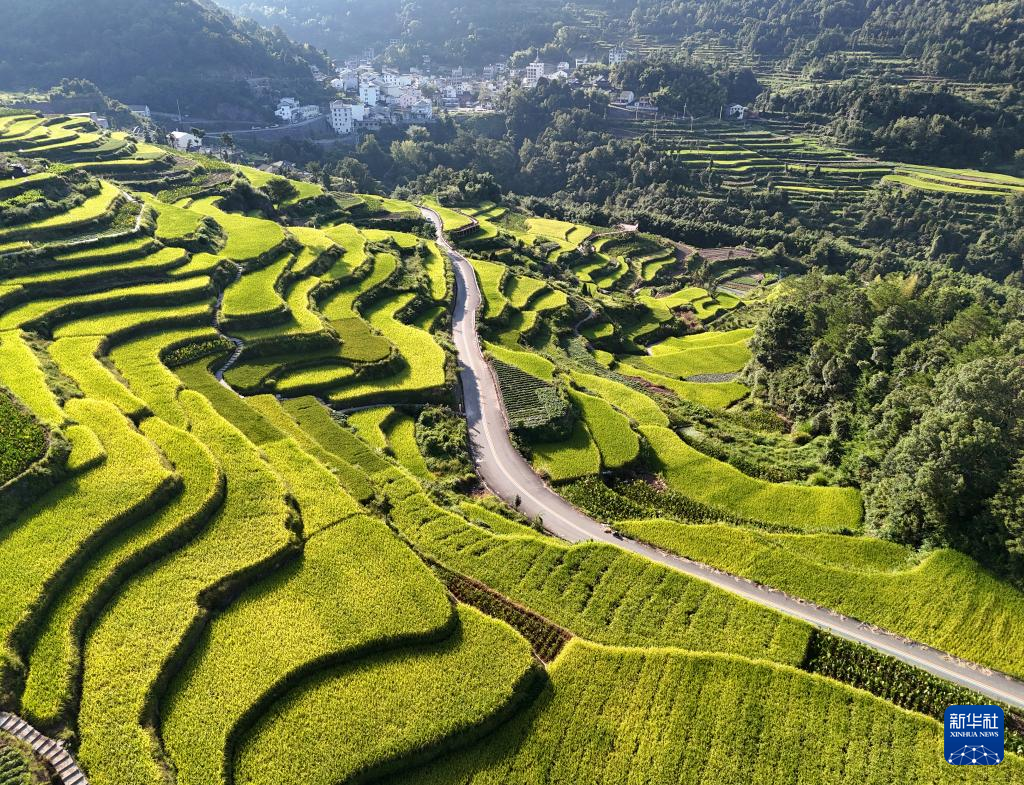 9月15日拍摄的浙江省乐清市白石街道中雁村山间梯田(无人机照片)。