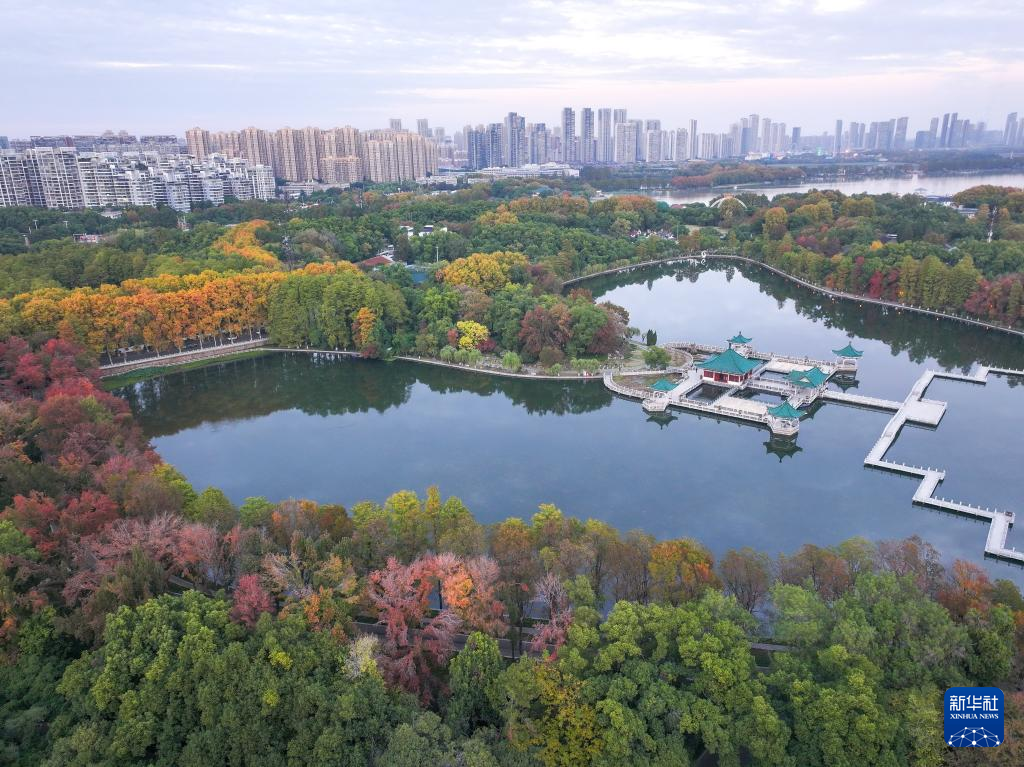 11月13日在湖北省武汉市东湖风景区拍摄的初冬景色(无人机照片)。