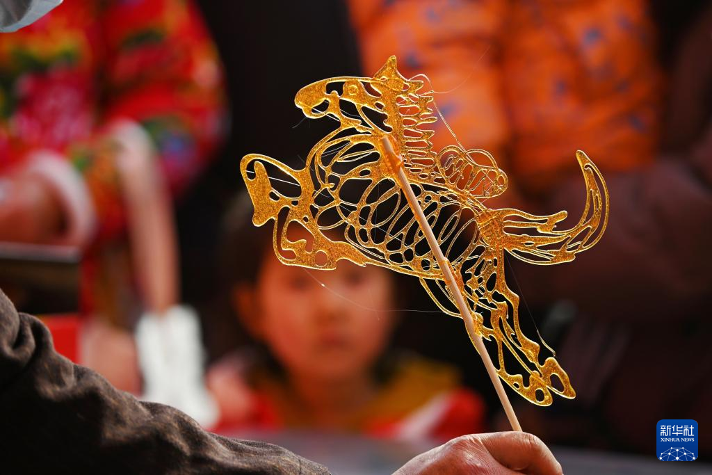 1月25日,在山东省滕州市,民间艺人在制作糖画“奔马迎春”。