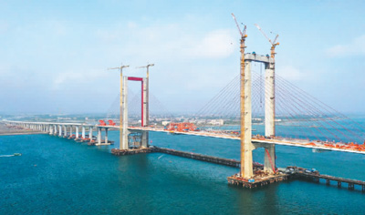 1月25日,湛江調順跨海大橋成功合龍。(新華社記者 劉大偉 攝)