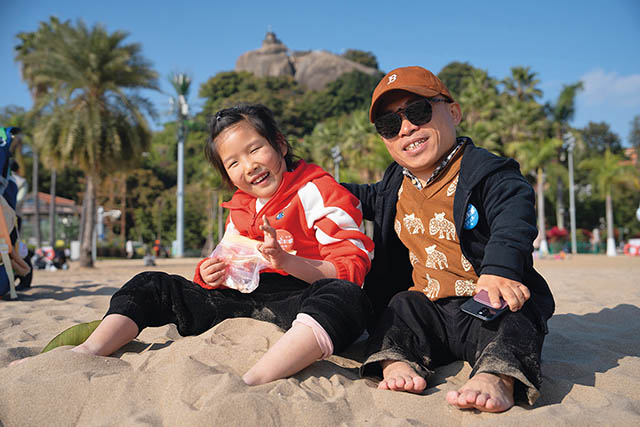 2024年“罕罕漫游”厦门站,蔻德罕见病中心创始人、主任黄如方和刘诗瑶小朋友在海边