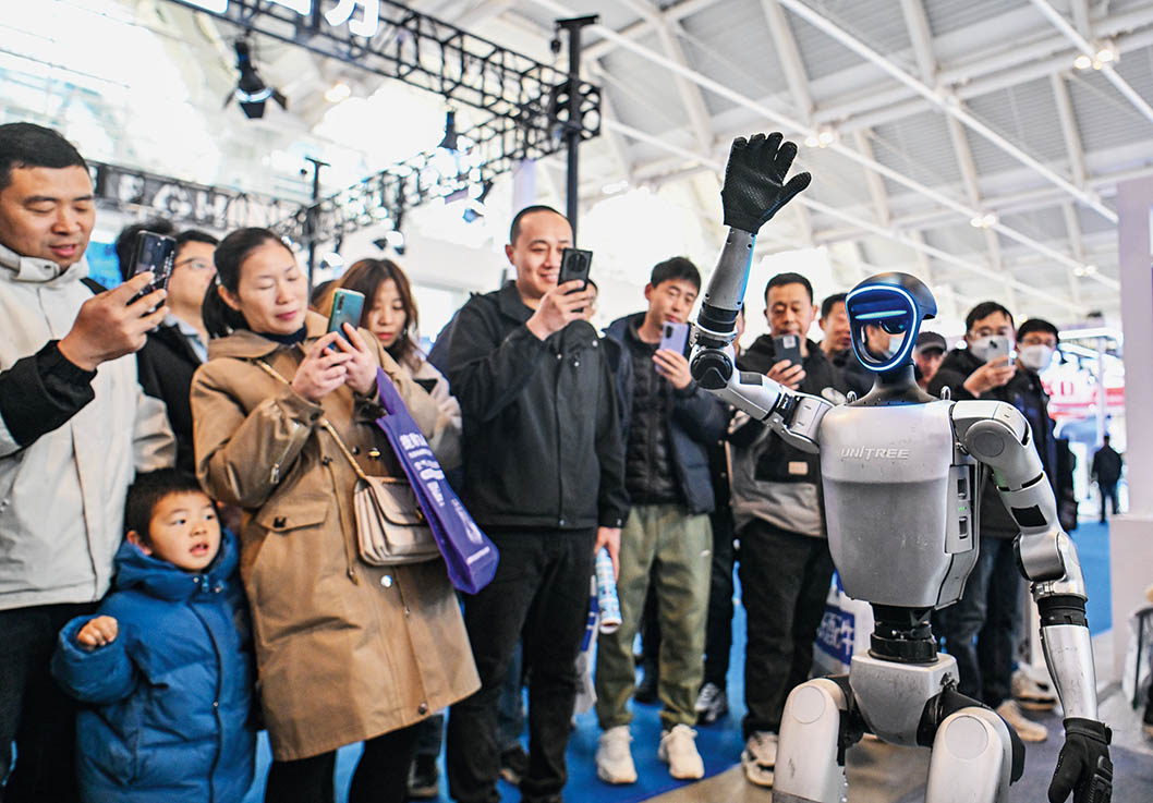 3月6日,在国家会展中心(天津),宇树科技带来的一款人形机器人现场表演