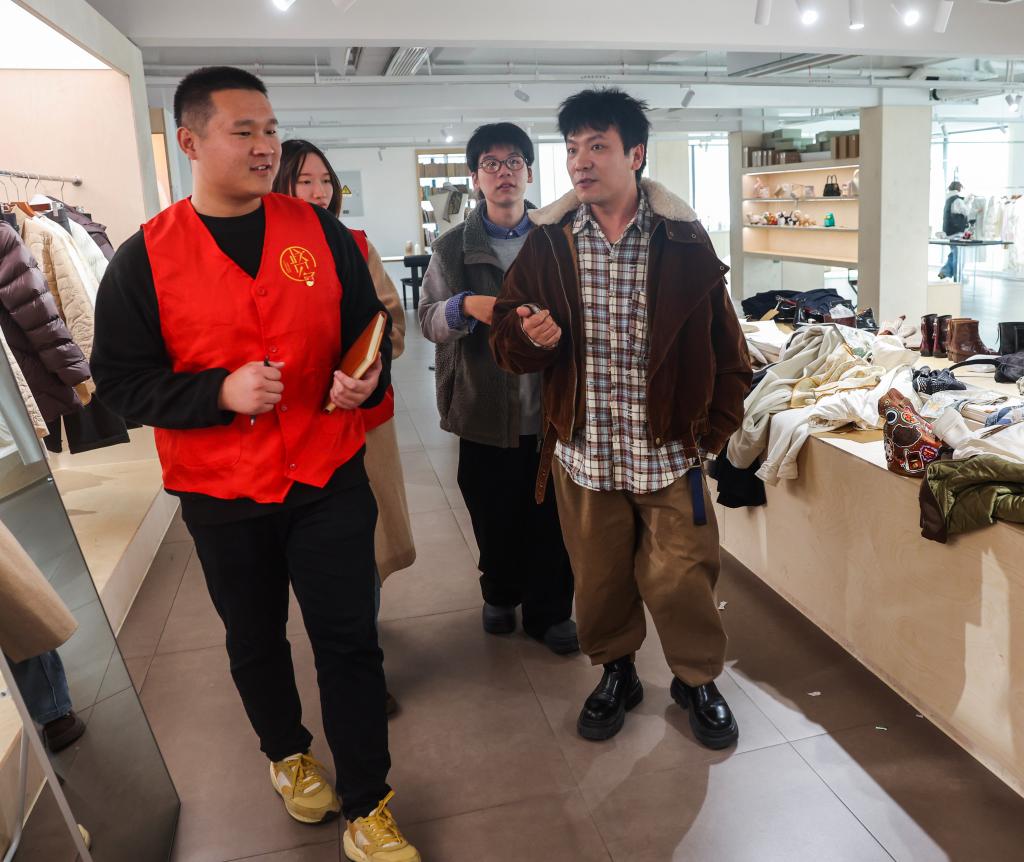 12月11日,在浙江省嘉兴市南湖区东栅街道的电商产业园区内,党员志愿者进行入企服务。