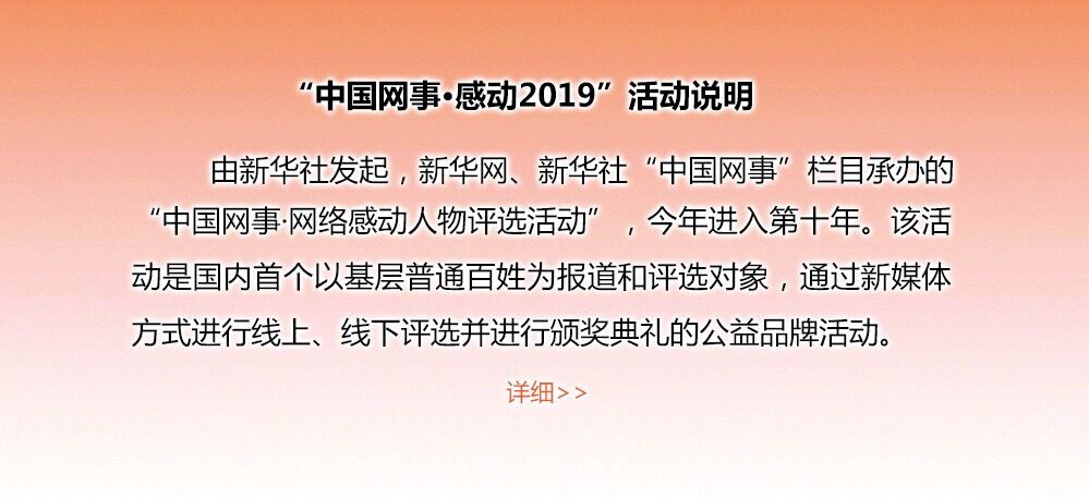現(xiàn)場直播:“中國網(wǎng)事·感動2019”年度網(wǎng)絡(luò)人物頒獎典禮