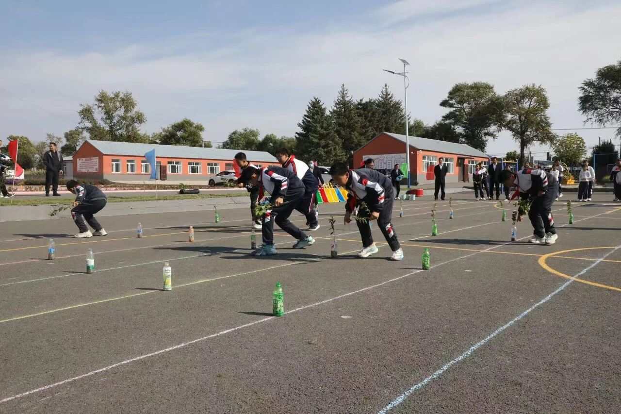 比赛环节,更是精彩纷呈。发展乡中心学校50米跑、企鹅漫步、100米跑、赶猪跑、立定跳远、200米跑、端球跑、比谁准、400米跑和4x100米接力等十个项目,覆盖了一至九年级的学生。曙光乡中心学校独轮车运南瓜、套圈摘果蔬、插秧比赛、春种秋收接力、30米拖球跑接力、篮球运球接力、60米跳绳跑、立定跳远、实心球投远、跳绳、足球障碍运球接力、拔河比赛等项目,全校学生都参与其中。
