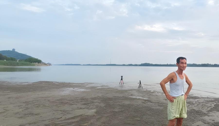 2025年9月11日,爱好延时摄影的马鞍山市居民周泽正在等待日落时分。(新华网记者李雪芹 摄)