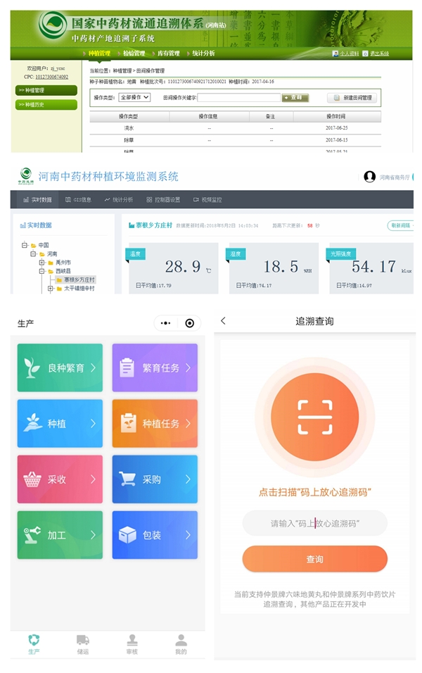依托國家中藥材流通追溯體系、河南中藥材種植環境監測系統、宛西制藥ERP信息系統,企業建成中藥材及中成藥生產流通可追溯體系,實現從基地藥材、中藥飲片、生產過程、質量檢測、市場流通全流程的業務管理和質量溯源管理。通過機制創新、優化流程,實現統一管理,滿足強化企業質量管控。
