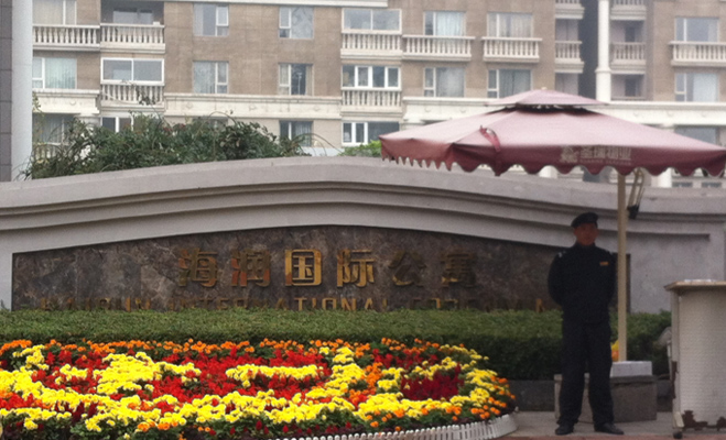 在海潤(rùn)國(guó)際公寓、昆侖公寓等多個(gè)項(xiàng)目中,記者看到了這樣一幕,業(yè)主無(wú)論是開(kāi)車(chē)亦或是步行,保安人員遠(yuǎn)遠(yuǎn)就施以敬禮,業(yè)主無(wú)不回復(fù)以微笑。
