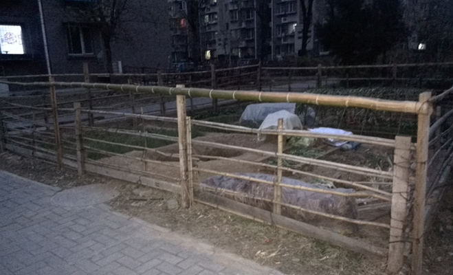 小區內的公共綠地被嚴重侵占。許多公共綠地被業主開辟為私家菜地,種植了各種蔬菜,用柵欄進行了隔離,甚至有業主布設了大棚。據保安反映,城管曾要求業主恢復過去的綠地,但未見收到任何效果。