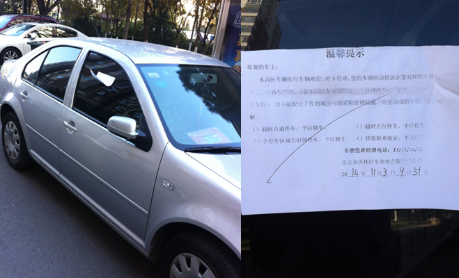 進入小區后記者在門口左側等位置發現了多輛亂停車輛,上面被貼上了警示標志。一單元門口位置私家車甚至都擋住了無障礙通道,居民對此頗有微詞。