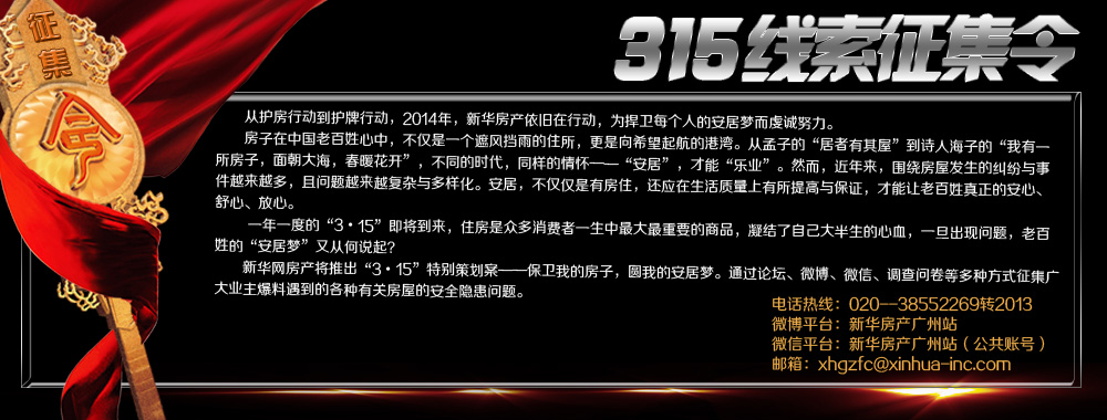 | Copyright ? 2000 - 2013 XINHUANET.com All Rights Reserved. 制作單位:新華網(wǎng) 版權(quán)所有:新華網(wǎng) 執(zhí)行:新華房產(chǎn)廣州站 監(jiān)制:彭浣鋆 美編:李素琴 專題制作:新華房產(chǎn)廣州站新聞部 |
