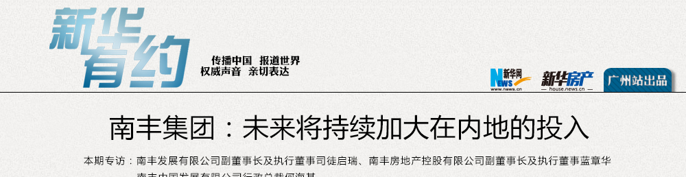 已在廣州投資南豐匯環球展貿中心和南豐國際會展中心的南豐集團,未來仍將廣州定為房地產發展進攻之地。藍章華表示,從信息優勢、品牌優勢、創新優勢上來說,南豐有大舉進攻廣州市場的信心。【詳情】