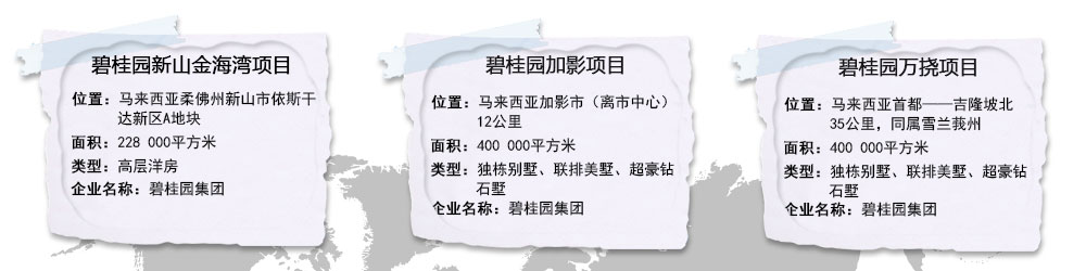 | 碧桂園目前在馬來西亞建設中的項目有3個,預計今年都會陸續推出市場,馬來西亞項目是碧桂園海外業務跨出的第一步。目前海外市場正在摸索中,公司也沒有規定海外具體銷售額,而是給他自由的嘗試。總裁莫斌表示,海外市場是有中長期規劃,近期要成立一個海外事業部,專門研究海外市場,除了馬來西亞,還可能…… [詳細] |