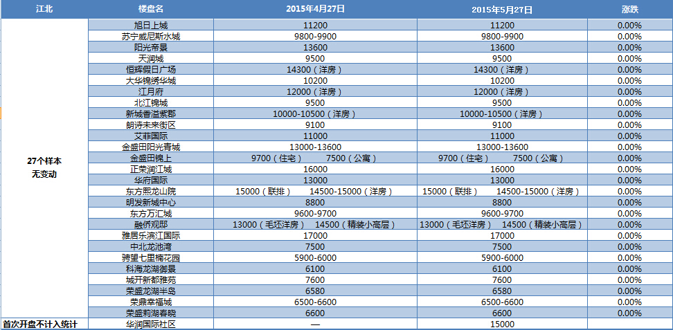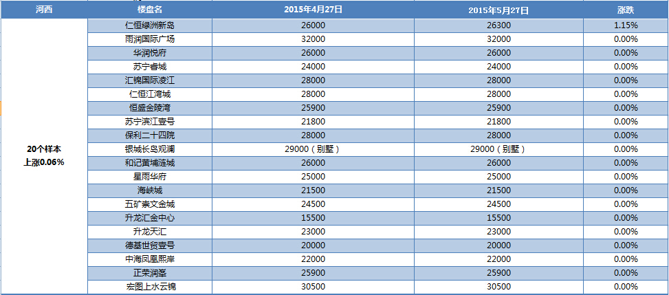 新華房產(chǎn)統(tǒng)計(jì)發(fā)現(xiàn),2015年5月南京樓市八大板塊中,河西、城南、城東、江寧房價(jià)出現(xiàn)小幅上漲,其余板塊房價(jià)無變動(dòng)。綜合結(jié)果,5月房價(jià)環(huán)比微漲0.43%。 [詳細(xì)]