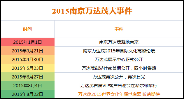 2015世界文化年當天,將有俄羅斯、埃及、巴西等眾多國際的使節(jié),聯(lián)合國開發(fā)計劃署項目官等世界名流,大家歡聚一堂,除了見證這一盛世活動的啟幕,更將一起規(guī)劃出南京萬達茂國際街,南京最長的一個主題步行商業(yè)街的未來發(fā)展,打造出一個原汁原味的世界風情街。