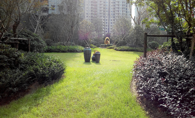 在一塊綠色的草地上設有兒童游樂區,孩子們玩得歡樂,老人們陪伴在側。正在帶孫子玩耍的林大媽訴記者:“這里環境、空氣都很好,天氣好的時候我們就會帶孩子出來玩耍,或者自己在小區內散散步,曬曬太陽,很愜意?!?/p>