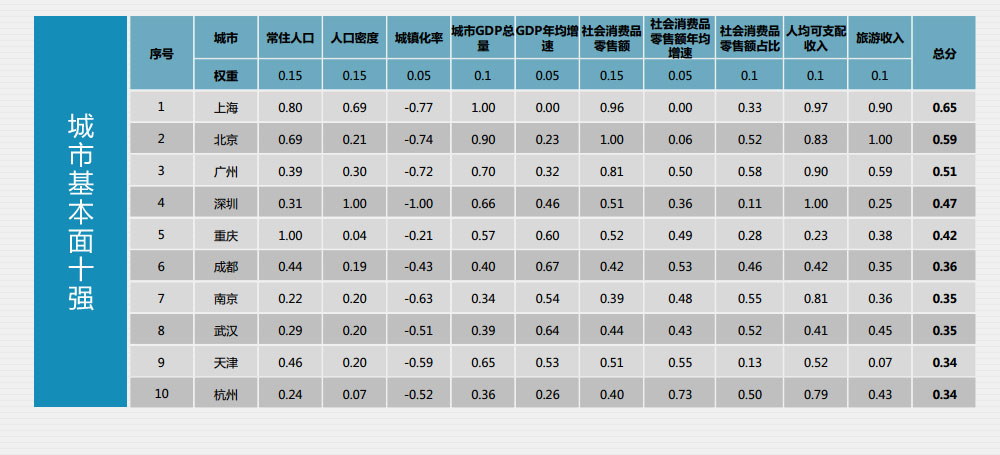 | 北京、上海等一線城市常住人口數量多,且人口吸引力大,對商業地產發展提供人口支撐;此外,天津、重慶、成都等重點城市,也具有較大人口優勢。 |