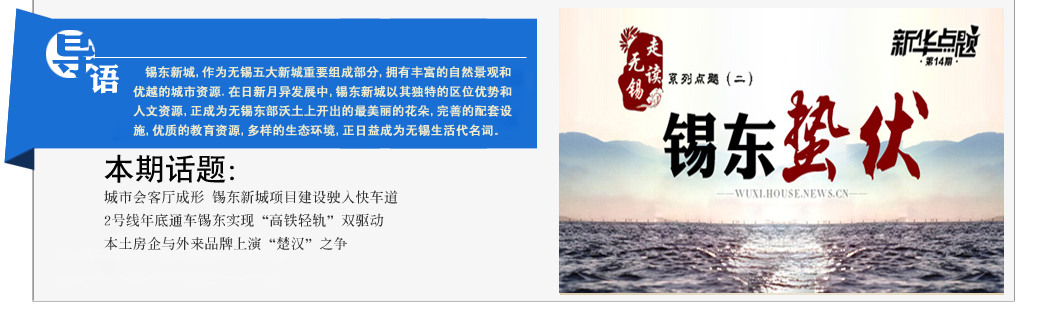 按照無錫城市總體規劃藍圖,伴隨著京滬高鐵無錫站崛起的錫東新城,將重點打造成無錫未來的交通樞紐。在規劃定位上,錫東新城是一體兩翼,一核帶動,兩翼齊飛的模式,雖然是以站建城,但又不完全僅僅依靠這個高鐵站。