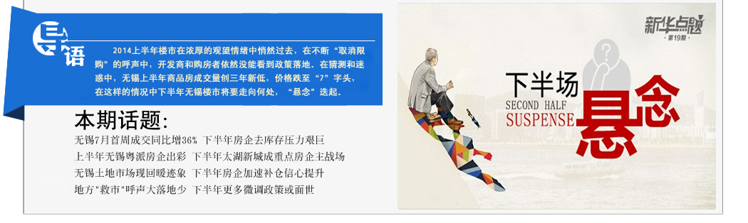 上半年無錫樓市,碧桂園和恒大兩大粵派房企上半年成績斐然,在無錫取得不俗的銷售成績。下半年,寶能、中海、協信、萬達城等幾大房企依然會有不小動作,究竟誰將會在激烈的競爭中突出重圍,懸念靜待揭曉。