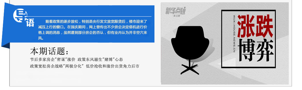 受到政策利好等因素影響,無錫多家知名房企紛紛調整銷售策略為年底沖刺業績做好準備。在新一波的策略調整中,“以價換量”、“迎市而漲”成為最顯著的兩種手段,兩種截然相反的營銷策略究竟哪種能夠抓住購房者的心?