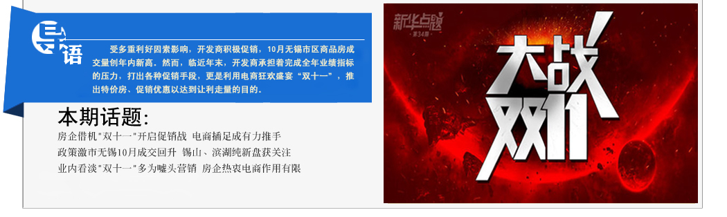 11月對于房地產市場而言似乎并不是個傳統旺季,然而借著“雙十一”全民購物狂歡的熱潮,這個11月也擺脫了傳統淡旺季的慣性,開發商延房地產市場回暖的勢頭,加大宣傳與優惠力度,為完成年終業績指標再度沖刺。