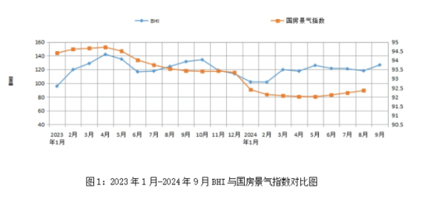 新华网北京10月16日电(记者 王日晨)10月15日,由商务部流通业发展司立项、中国建筑材料流通协会编制并发布的全国建材家居景气指数BHI9月份为126.68,环比上涨8.54点,同比下跌4.87点。全国规模以上建材家居卖场9月销售额为1422.48亿元,环比上涨14.37%,同比下跌2.21%;1-9月累计销售额为10854.92亿元,同比下跌4.87%。