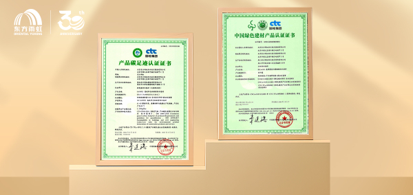 在低碳技术与环保宜居产品研发应用方面,东方雨虹在以先进防水材料全国重点实验室为核心的高能级创新平台的驱动下,紧密围绕低碳环保、提质降耗、协同增效等方面精准发力,并取得了一系列令人瞩目的成果:不仅先后斩获国内首张“绿色建材认证证书”、行业首张“产品碳足迹认证证书”,更有数款产品获得海内外权威认证,彰显了其在绿色建材领域的卓越实力。
