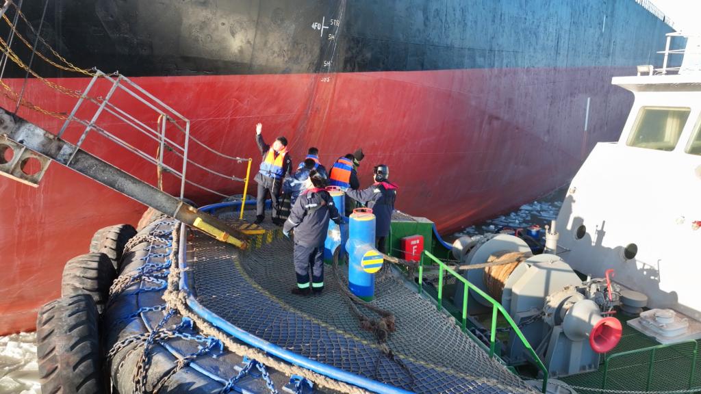 “为了降低海冰对船舶航行的影响,我们实时跟踪冰情分布与发展走向,同时采取海巡船动态跟航护航、大船带小船等方式组织船舶进出港,调派大马力破冰拖轮为进出港船舶提供24小时不间断破冰作业。冰期以来,共保障237.8万吨原油、电煤、化肥等重点物资运输畅通。”吴庆利说。