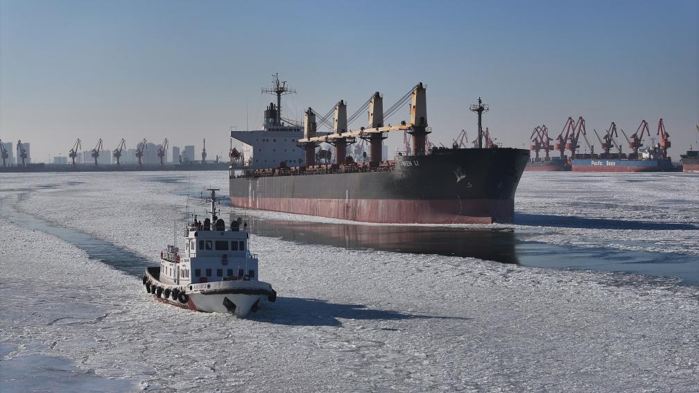 营口港是国内电煤、粮食和成品油运输的重点港口之一,进入冰期以来,营口港进出港船舶流量日均约65艘次。当前正值“北粮南运”高峰期,用于保障民生的电煤、原油以及化肥等物资运输量也保持较高水平。