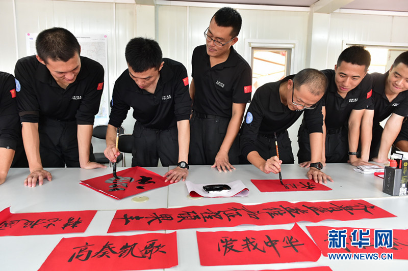 ????2月4日,在新春佳節來臨之際,第三支赴利比里亞維和警察防暴隊組織隊員開展“寫春聯 迎新春”活動。
