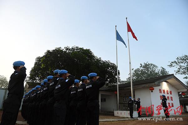 ????升旗儀式結(jié)束后,隊員們紛紛表示,在遠(yuǎn)離祖國親人的異國他鄉(xiāng)執(zhí)勤并不孤單,看到迎風(fēng)招展的五星紅旗,心底里就有一種溫暖在緩緩流淌,雖與祖國親人遠(yuǎn)隔萬里,仿佛也是近在咫尺,作為一名光榮的中國維和警察,倍感驕傲自豪!