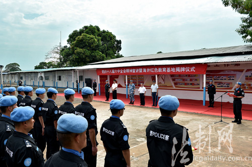 ????揭牌儀式上,中國第四支駐利比里亞維和警察防暴隊政委徐曉偉宣讀了公安部邊防管理局黨委書記、政委牟玉昌專門發(fā)來的賀電,向防暴隊成立海外紅色教育基地表示熱烈祝賀,充分肯定了防暴隊取得的成績,并要求武裝頭腦、指導(dǎo)實踐、推動工作,牢固樹立“四個意識”,嚴肅黨內(nèi)政治生活,以更加出色的成績和過硬作風(fēng)為全國邊防官兵作好表率。