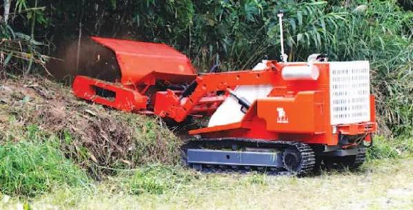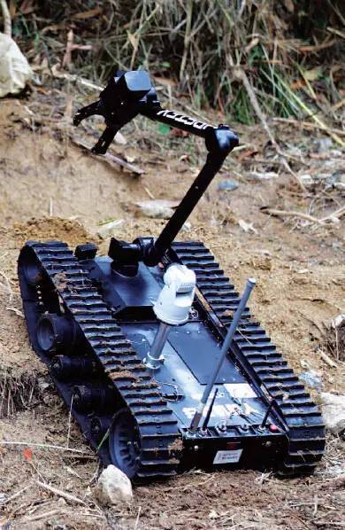 雷場(chǎng)清障車,是通過(guò)遙控操作的。具有在坡度小于40°的山地進(jìn)行清障排爆作業(yè)的功能。該車具有較強(qiáng)的爬坡能力,操作手可以在1000米范圍內(nèi)實(shí)施無(wú)線遙控控制,完成掃除淺層防步兵地雷、清除灌木叢和鏟運(yùn)樹(shù)木等任務(wù),以電錘擊爆地雷手雷等未爆炸物品,這期間即使產(chǎn)生爆破碎片或者沖擊波都不會(huì)對(duì)操作員構(gòu)成危險(xiǎn)。