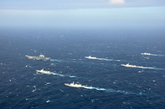 2016年12月26日,執(zhí)行跨海區(qū)訓(xùn)練任務(wù)的中國海軍遼寧艦航母編隊(duì)。視覺中國供圖(資料圖片)