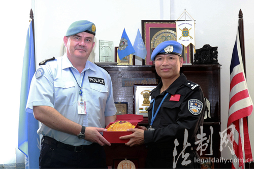 ????藍(lán)隊(duì)長向總警監(jiān)匯報了中國防暴隊(duì)編成、物資裝備、甄選考核以及抵達(dá)任務(wù)區(qū)后執(zhí)行維和勤務(wù)等情況,介紹了中國防暴隊(duì)在部隊(duì)正規(guī)化建設(shè)、治安形勢研判、后勤綜合保障等方面經(jīng)驗(yàn)做法,并表示將恪守聯(lián)合國核心價值,堅(jiān)決服從聯(lián)利團(tuán)指揮鏈條,嚴(yán)格落實(shí)防暴辦下達(dá)的各項(xiàng)指令任務(wù),繼續(xù)保持和發(fā)揚(yáng)中國維和警隊(duì)紀(jì)律嚴(yán)明、敢打硬仗的優(yōu)良傳統(tǒng)。