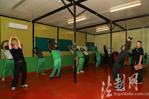 ????“左手抓對方拇指向外旋,右手托對方肘部,轉跨、擰腰……”警務實戰(zhàn)教官王變闖一邊神情自若地講解著動作要領,一邊干脆利落地完成一個精彩的“控腕翻肘”解脫動作演示,配手應聲倒地“就范”。“Wow……Good!”伴隨著一陣驚嘆,現(xiàn)場膚色各異的國際“學員”紛紛向中國教官豎起大拇指,報以雷鳴般的掌聲。近日,中國第五支駐利比里亞維和警察防暴隊警務實戰(zhàn)培訓班在任務區(qū)“驚艷”亮相。