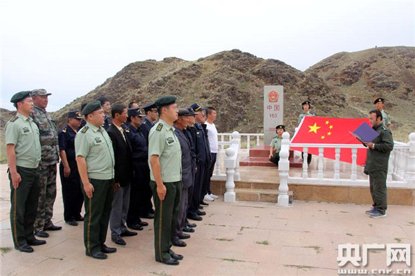 ????近日,烏拉斯臺邊檢站與口岸聯(lián)檢單位、“民族團(tuán)結(jié)一家親”親戚代表、自治區(qū)駐疆內(nèi)口岸工作組在中蒙163界碑共同舉行“軍旗映國門忠誠鑄軍魂”發(fā)聲亮劍活動,全面貫徹落實新疆維護(hù)社會平穩(wěn)和長治久安總目標(biāo),打牢維護(hù)民族團(tuán)結(jié)思想基礎(chǔ),進(jìn)一步增強廣大官兵的愛國主義情懷,展示執(zhí)勤官兵敢于發(fā)聲、勇于亮劍的堅定黨性及堅強擔(dān)當(dāng),表明堅決聽黨指揮、堅決維護(hù)社會大局安定的理想信念。官兵們一致表示,將始終以更加飽滿的工作熱情投入到邊檢查緝工作中,認(rèn)真履職,敢于擔(dān)當(dāng),筑牢邊境防控的銅墻鐵壁。