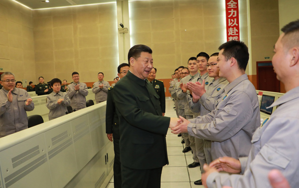 新華社成都2月12日電(記者李宣良、李國利)中華民族傳統節日——春節來臨之際,中共中央總書記、國家主席、中央軍委主席習近平10日來到駐四川部隊某基地,深入發射工位和技術廠房,看望慰問部隊官兵,代表黨中央和中央軍委,向全體解放軍指戰員、武警部隊官兵、民兵預備役人員致以誠摯問候和新春祝福。他強調,要認真貫徹黨的十九大精神,深入貫徹新時代黨的強軍思想,堅持政治建軍、改革強軍、科技興軍、依法治軍,聚焦備戰打仗,加快創新發展,全面提高履行使命任務能力,為實現黨在新時代的強軍目標作出新的更大貢獻。