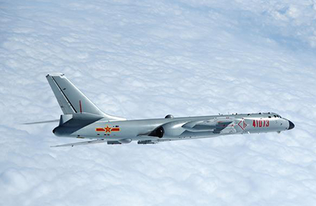 ????資料圖片:2017年11月23日,空軍轟-6K戰機前出第一島鏈開展遠洋訓練。新華社發(王國松 攝)