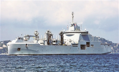 前不久,英国“威尔士亲王”号航母打击群在地中海演习期间,与“潮汐泉”号油料补给舰和“沃利·席拉”号干货补给舰共同完成一次海上补给行动。此次行动由2艘专业补给舰分工协作,耗时约10小时。这种“多对一”的补给模式,在高强度、快节奏的现代海战中效率并不高。与其相对应的是,近年来具备多种物资补给能力且补给速度更快的综合补给舰,逐渐成为多国海军构建远洋作战体系的核心装备,它被称为大洋上的“移动后勤基地”,是舰艇编队保持战斗力的关键。