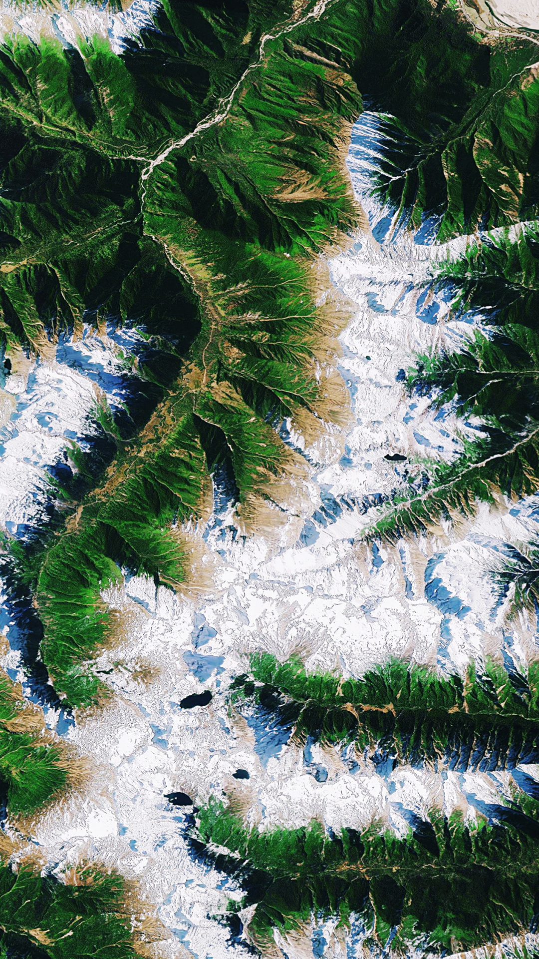 ▲圖為西藏自治區墨脫縣局部衛星圖,這是一個森林與冰雪相生相伴的地方。衛星數據來源:資源三號