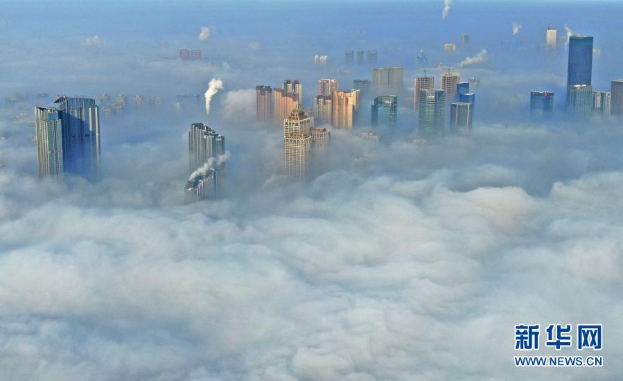 這是1月26日在沈陽市渾南區(qū)拍攝的市內(nèi)霧景(無人機照片)。新華社記者 楊青 攝