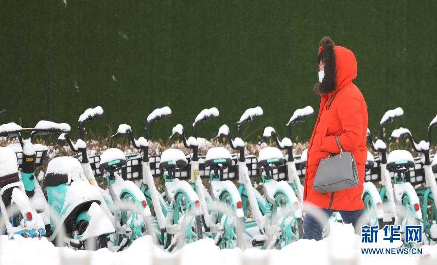 1月28日,在沈陽市渾南區,一位市民走在路上。