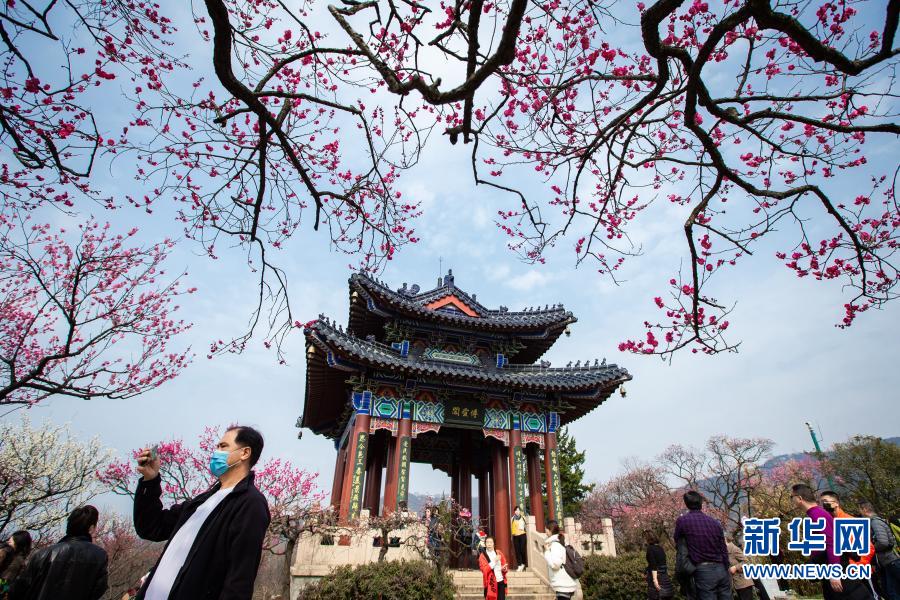 2月14日,游人在南京梅花山賞梅。