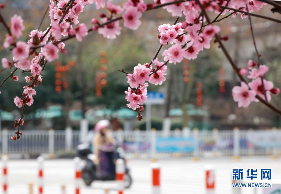 浙江景寧畬族自治縣街頭梅花盛開(kāi)(2月14日攝)。新華社發(fā)(李肅人 攝)