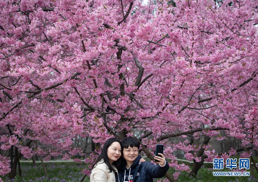 當日,武漢東湖櫻花園開園,東湖櫻花節同步舉辦。園內綻放的櫻花和文藝表演吸引游客前來賞花觀景,放松身心。