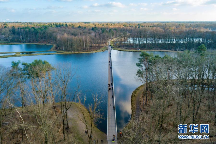 2月27日,人們在比利時小鎮波克萊克附近的“水中通道”中前行(無人機照片)。