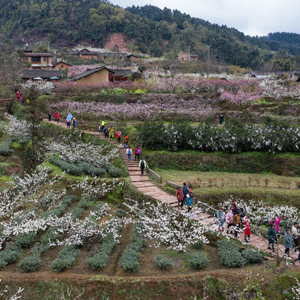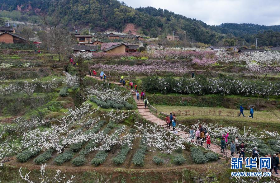 初春時節(jié),四川省丹棱縣順龍鄉(xiāng)幸福古村春意盎然,百花齊放,吸引各地游客前來踏青休閑。